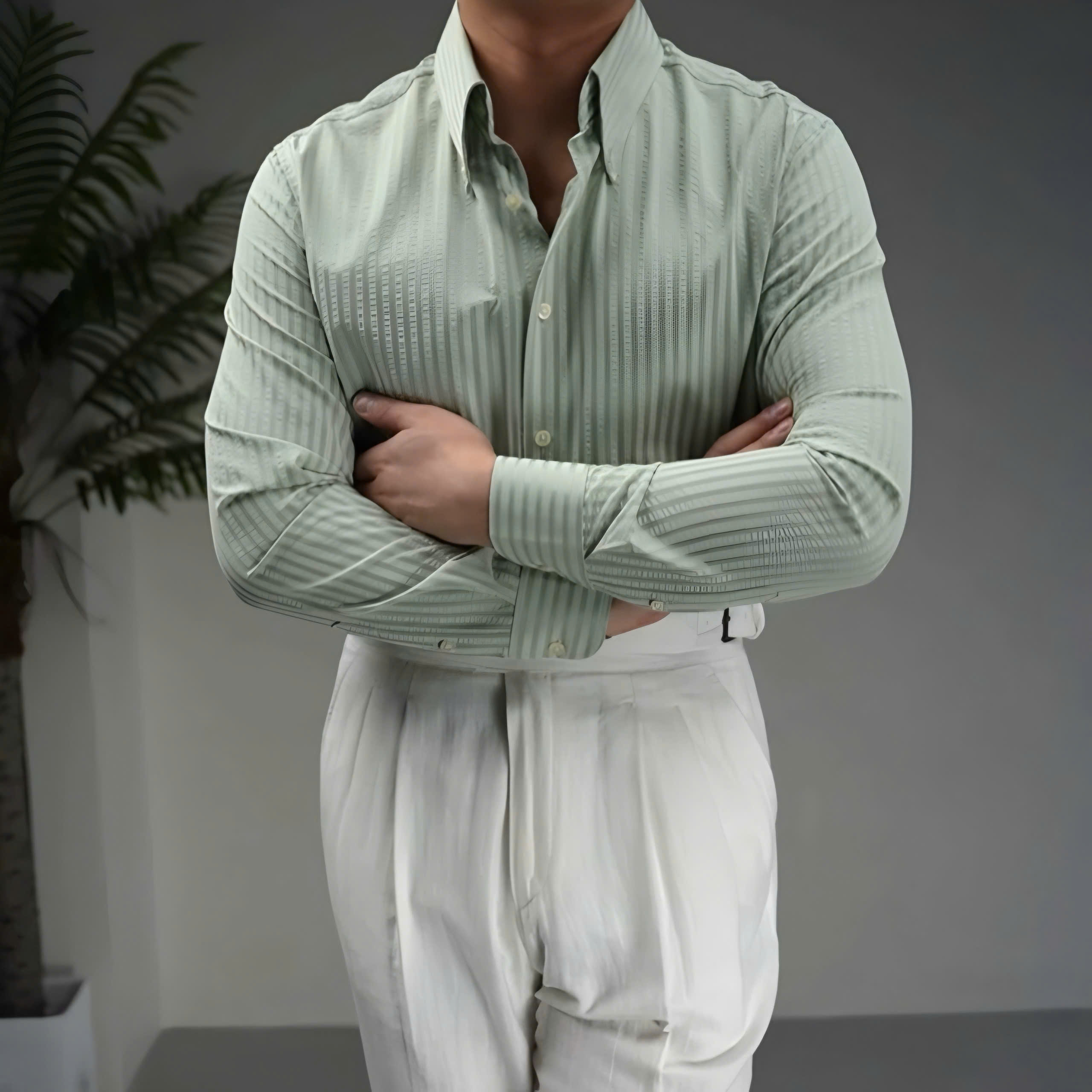 Họa tiết sọc nổi: Tạo chiều sâu và kết cấu độc đáo cho áo, mang đến vẻ ngoài tươi mới, khác biệt so với sơ mi trơn thông thường.