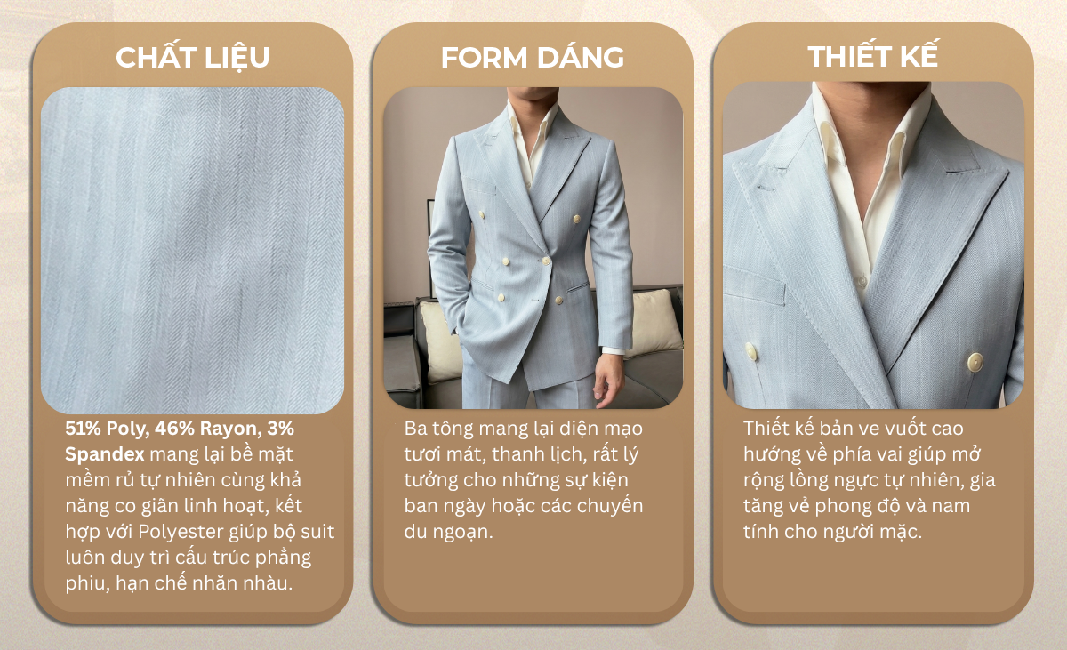 Phom dáng ôm nhẹ cơ thể: Đường may sắc nét giúp tôn lên vóc dáng nam tính vô cùng hoàn hảo.