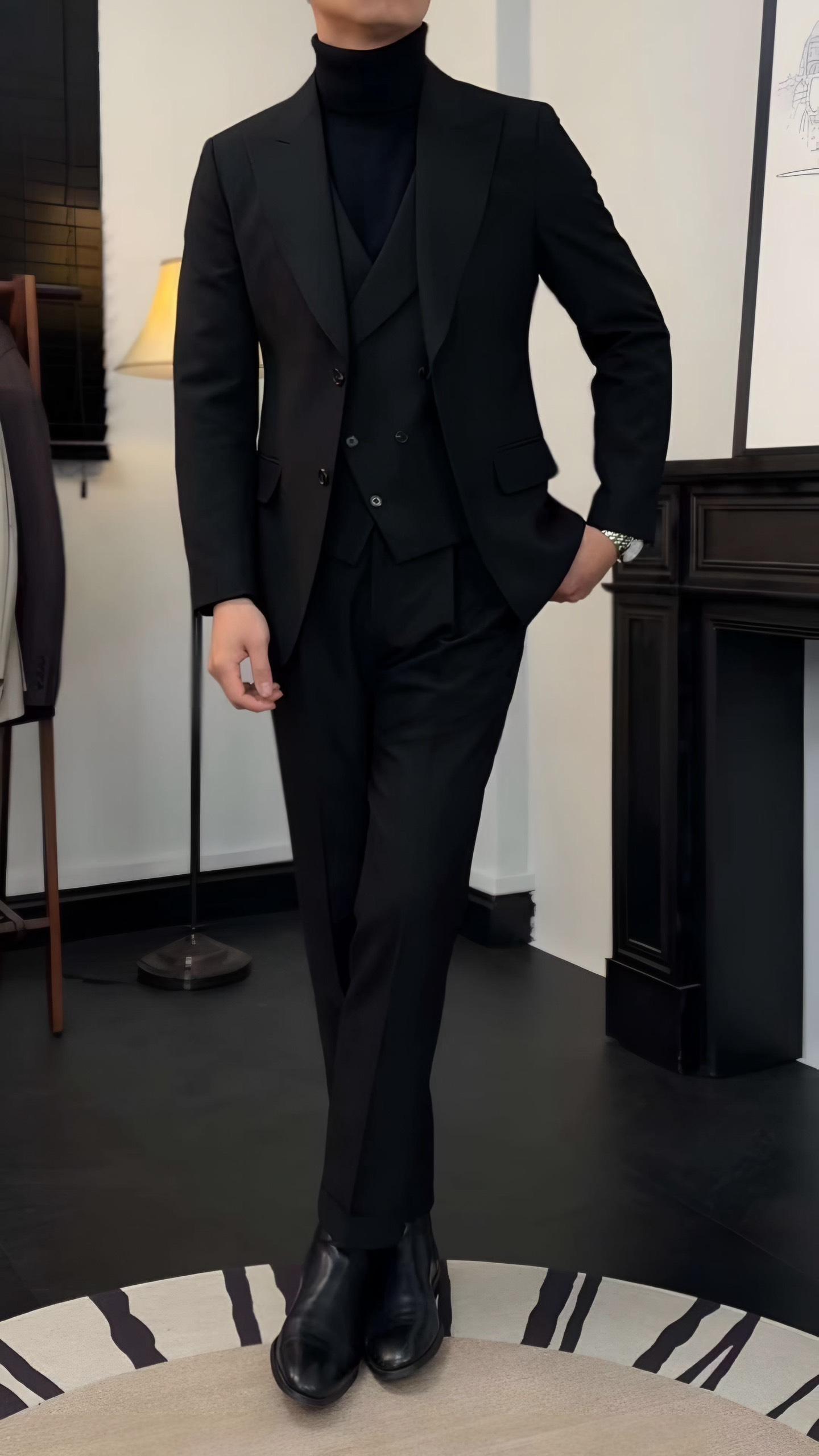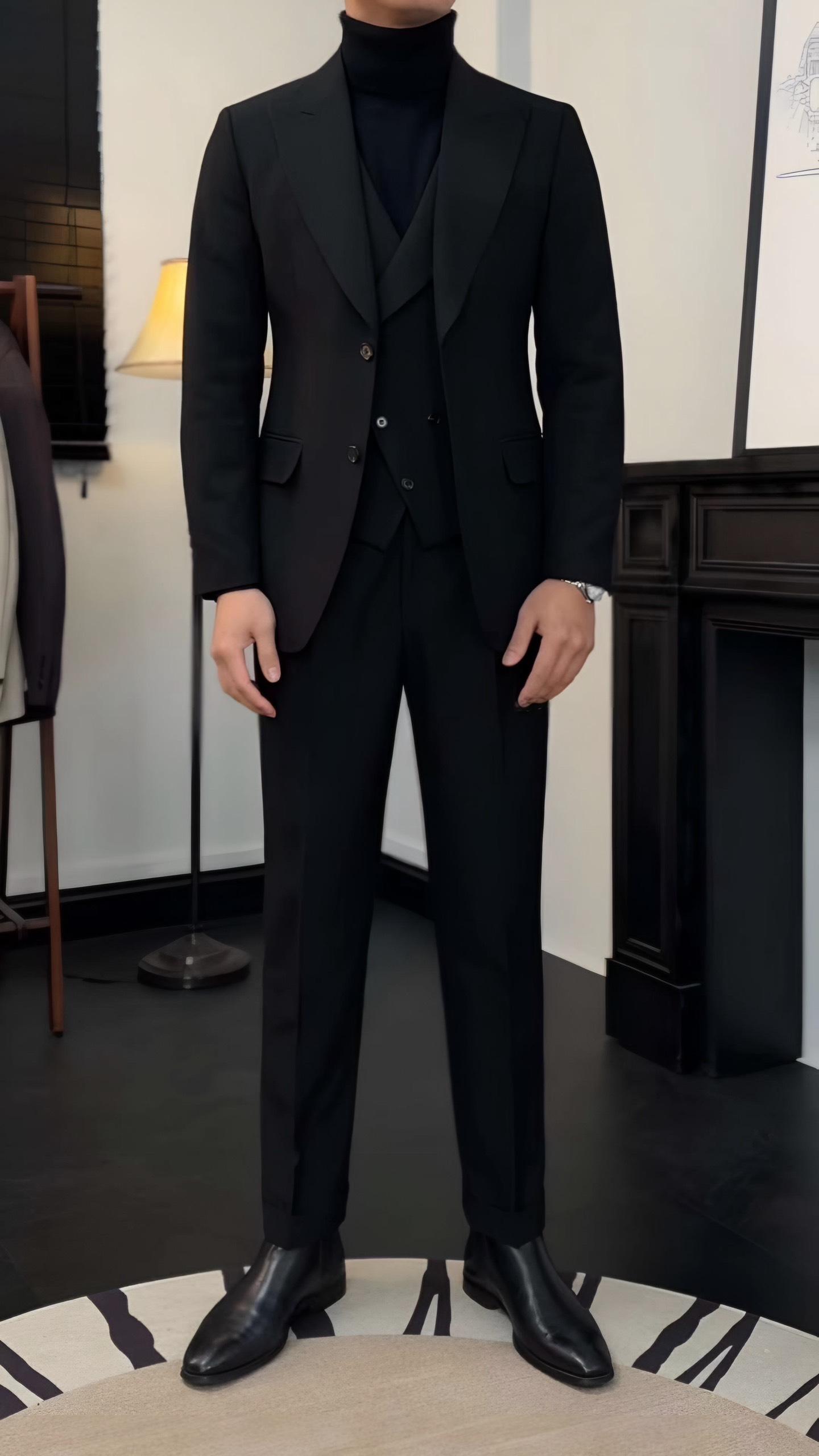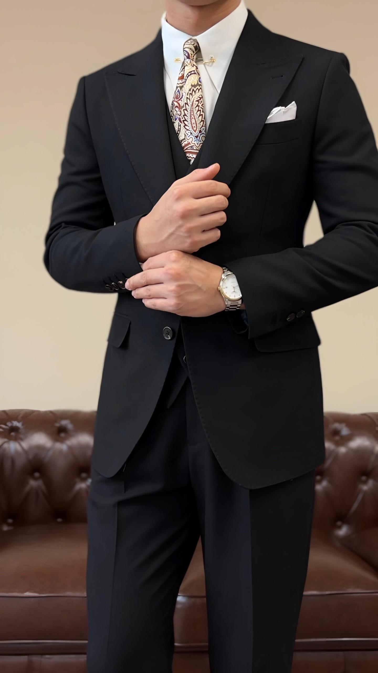 Suit Jacket Nam Cao Cấp Milano Đen (Jacket + Waistcoat + Trousers) - Ve Nhọn- Thiết Kế Sang Trọng