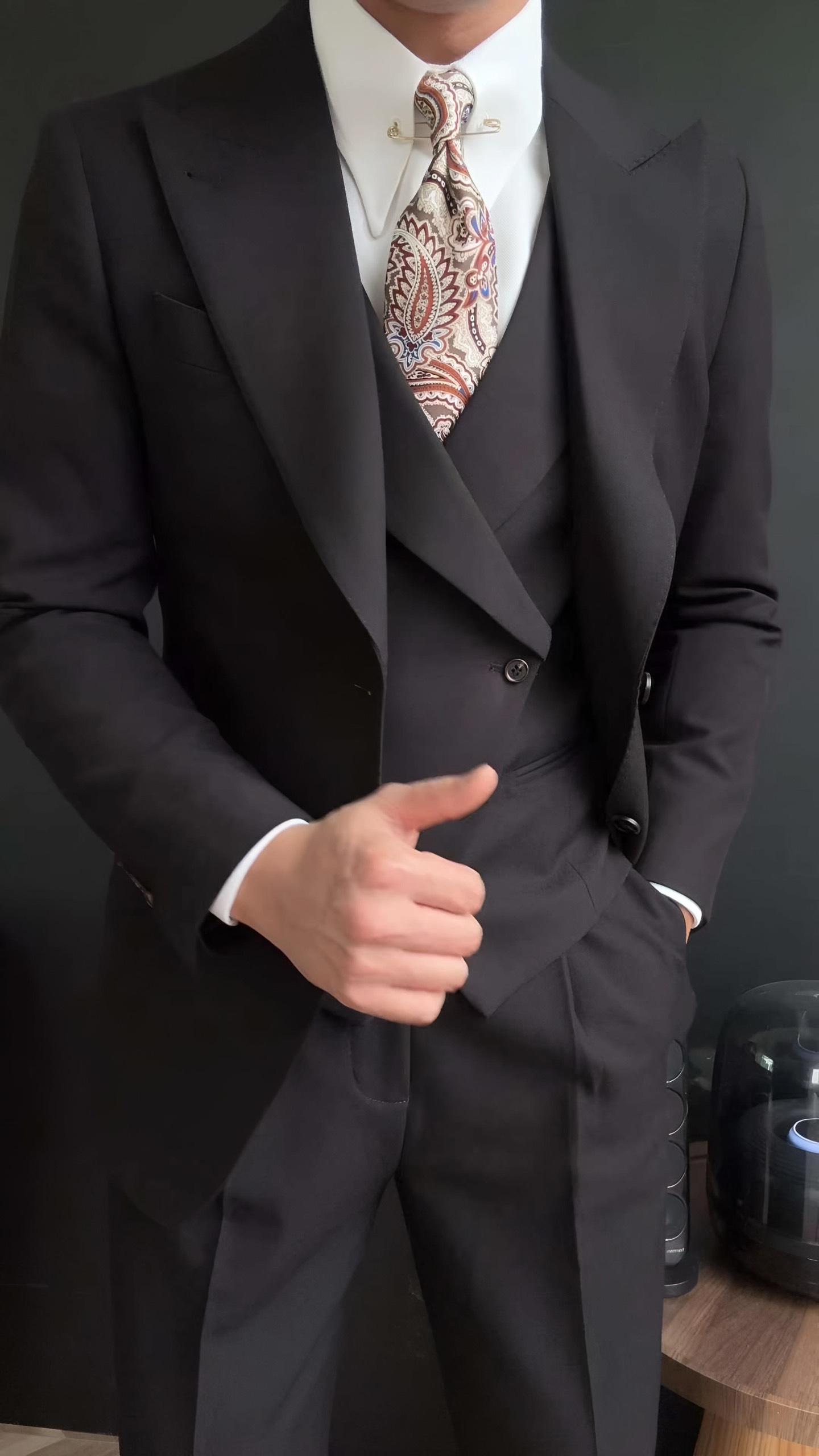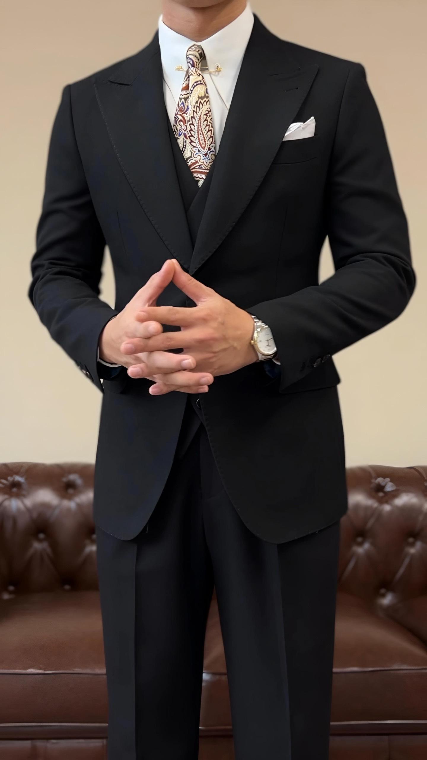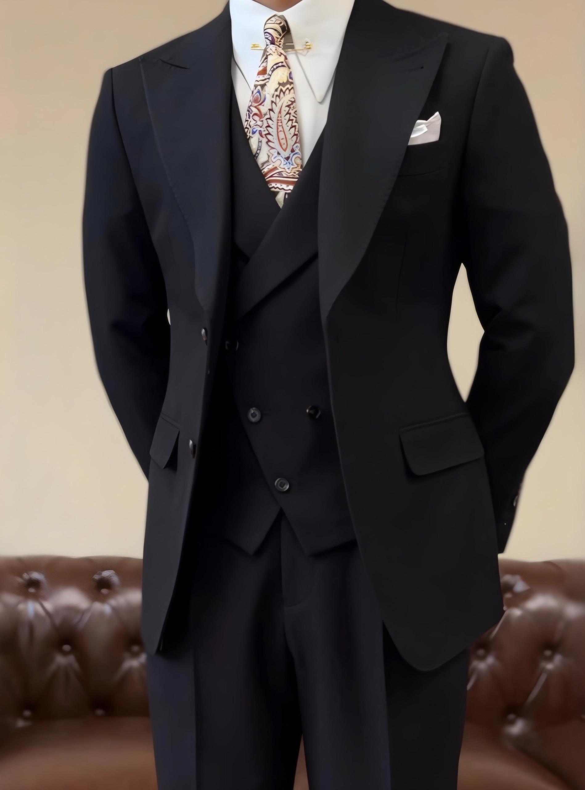 Suit Jacket Nam Cao Cấp Milano Đen (Jacket + Waistcoat + Trousers) - Ve Nhọn- Thiết Kế Sang Trọng