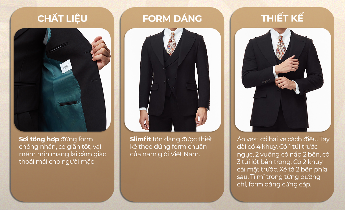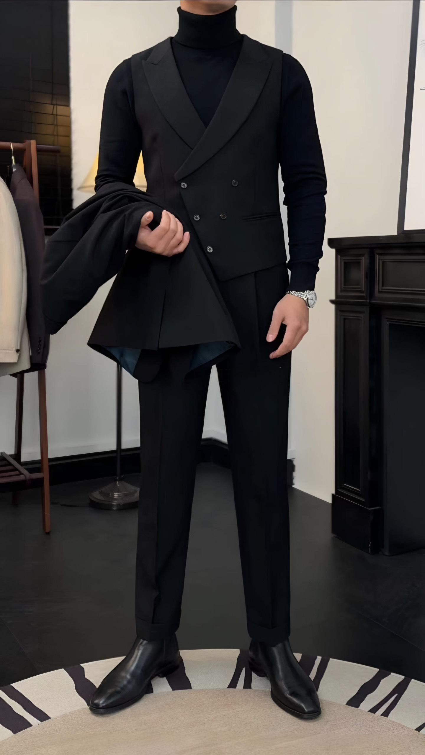 Bộ Suit Milano Đen (Jacket + Waistcoat + Trousers)
