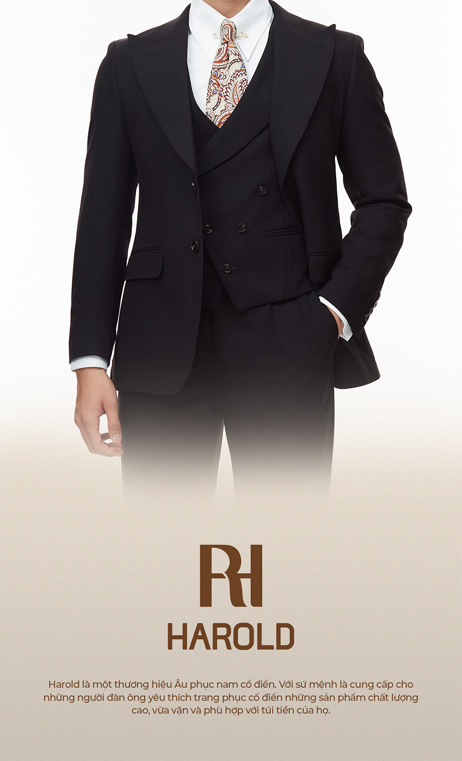 Harold chuyên thiết kế dòng suit may sẵn kết hợp giữa nghệ thuật thủ công và sự thanh lịch hiện đại. Với trọng tâm là thị trường Việt Nam và khách hàng quốc tế, sứ mệnh của chúng tôi là đưa sự lịch lãm trở nên dễ tiếp cận.