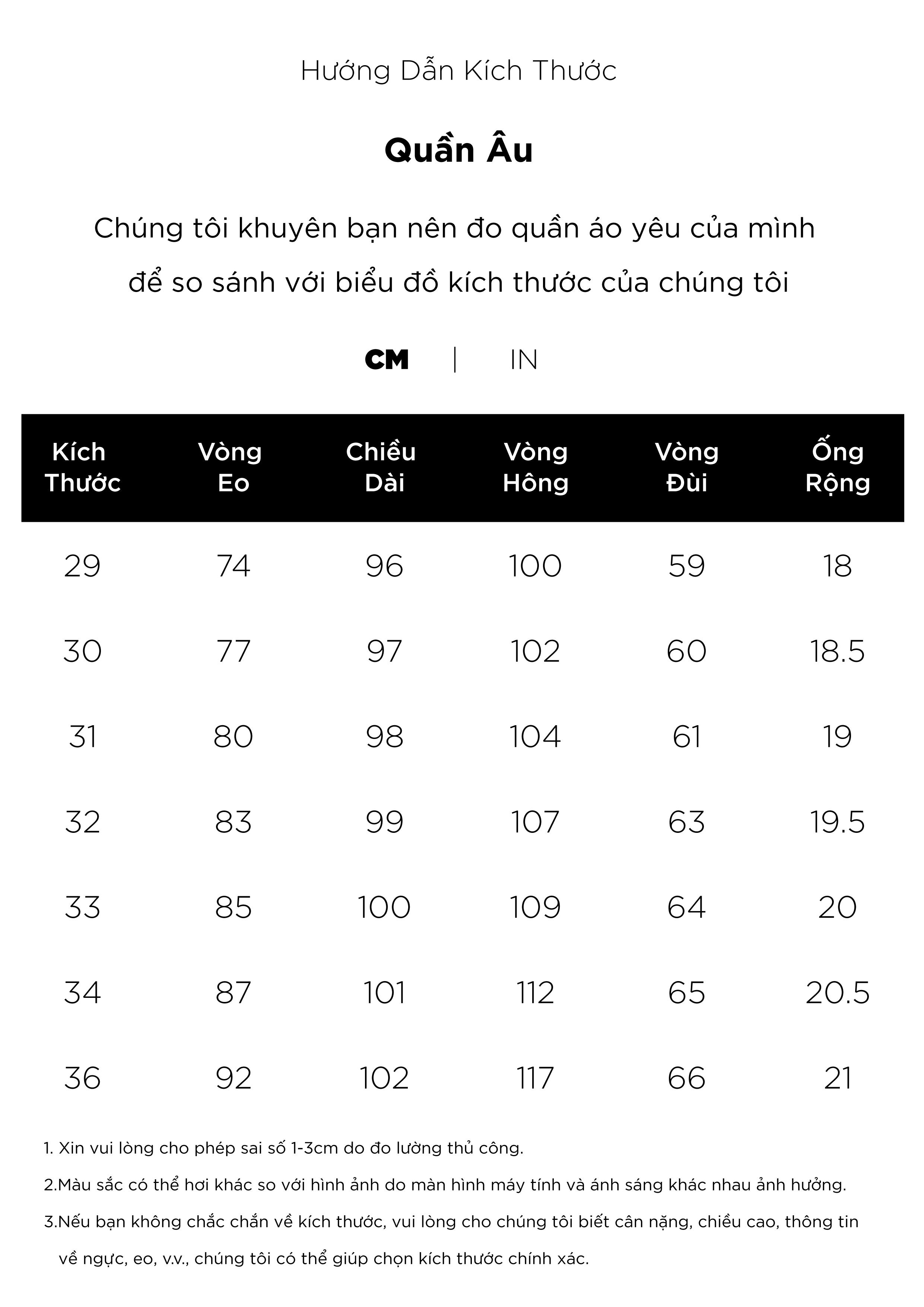 Để tránh trường hợp sản phẩm không vừa vặn, quý khách có thể sử dụng tính năng HƯỚNG DẪN ĐO KÍCH CỠ để chúng tôi có thể tư vấn kích thước chính xác nhất cho quý khách.