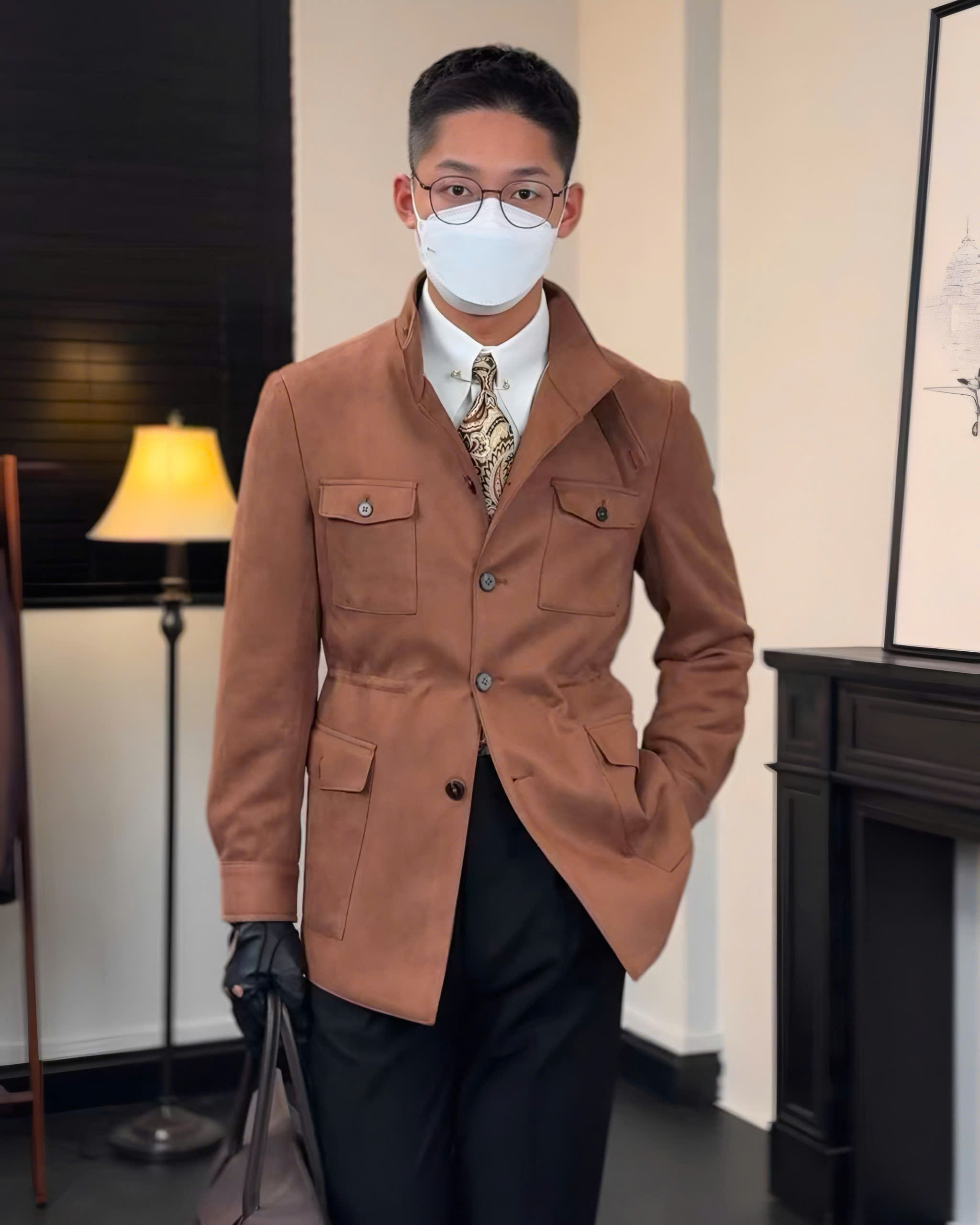 Bề mặt da lộn sang trọng : tạo vẻ ngoài độc đáo, khác biệt, kết hợp cùng ve áo nhọn tinh tế, giúp tôn lên sự lịch lãm và phong thái tự tin.