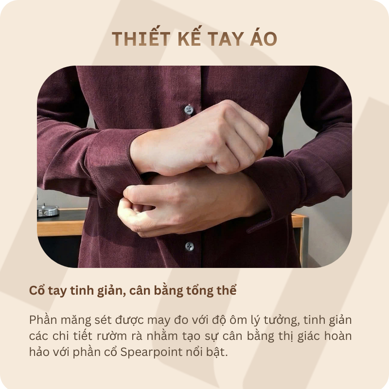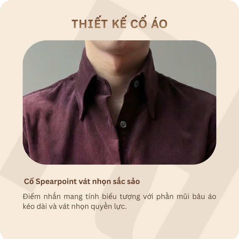 Cổ áo Spearpoint: Thiết kế cổ nhọn dài đặc trưng mang đậm phong cách vintage cổ điển, quý tộc.
