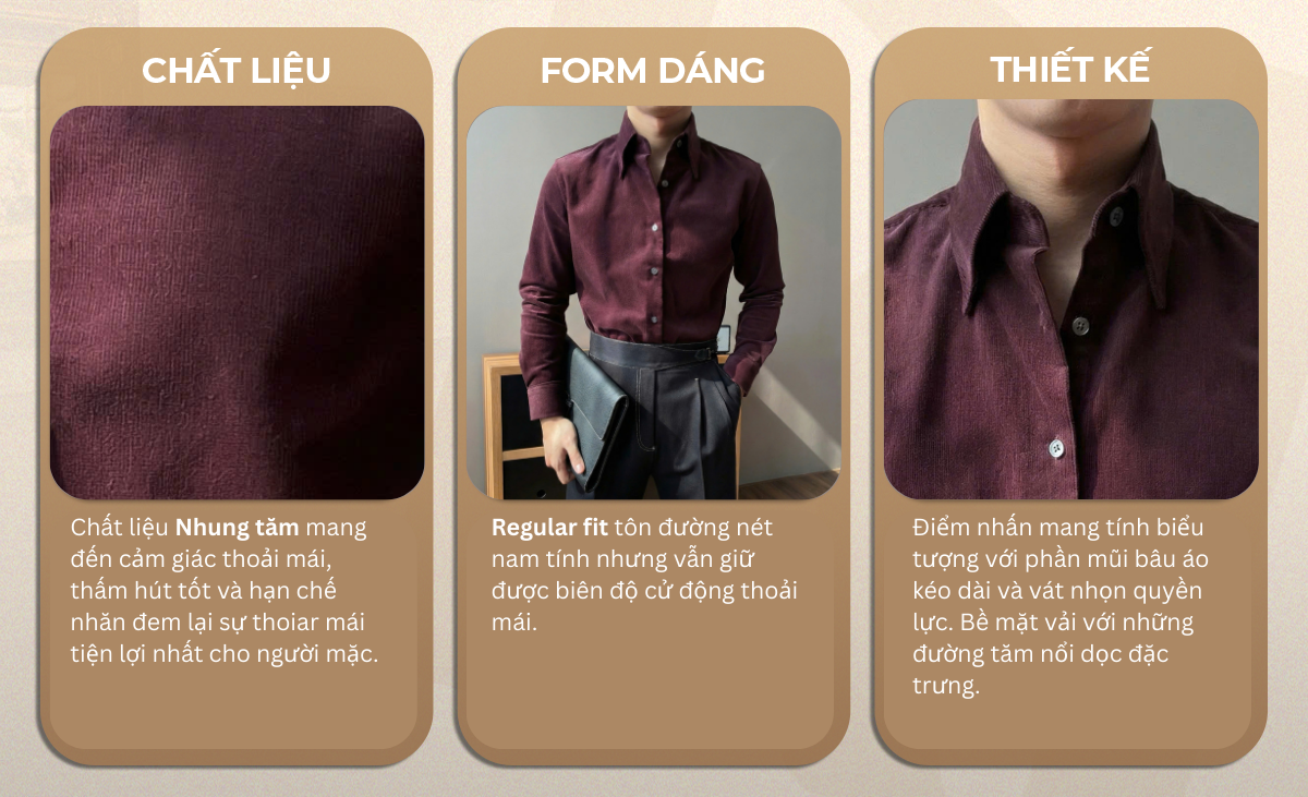 Màu sắc ấn tượng: Sắc đỏ rượu (Burgundy) sâu lắng, tôn da và dễ dàng tạo điểm nhấn cá nhân.