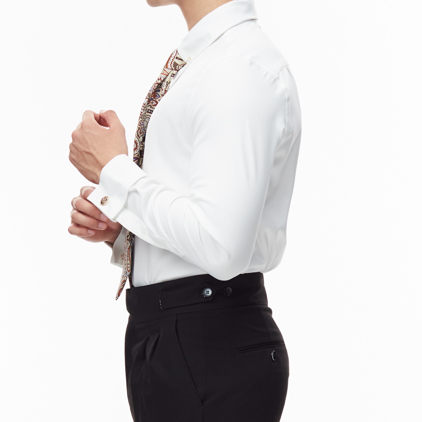 Ngoài collar pin, tay áo có cài cufflinks cũng là một chi tiết quan trọng để tăng thêm sự sang trọng và lịch lãm cho trang phục của bạn. Cufflinks không chỉ là một phần trang trí mà còn có vai trò giữ cho phần cổ tay áo được cố định một cách đẹp mắt và chắc chắn.