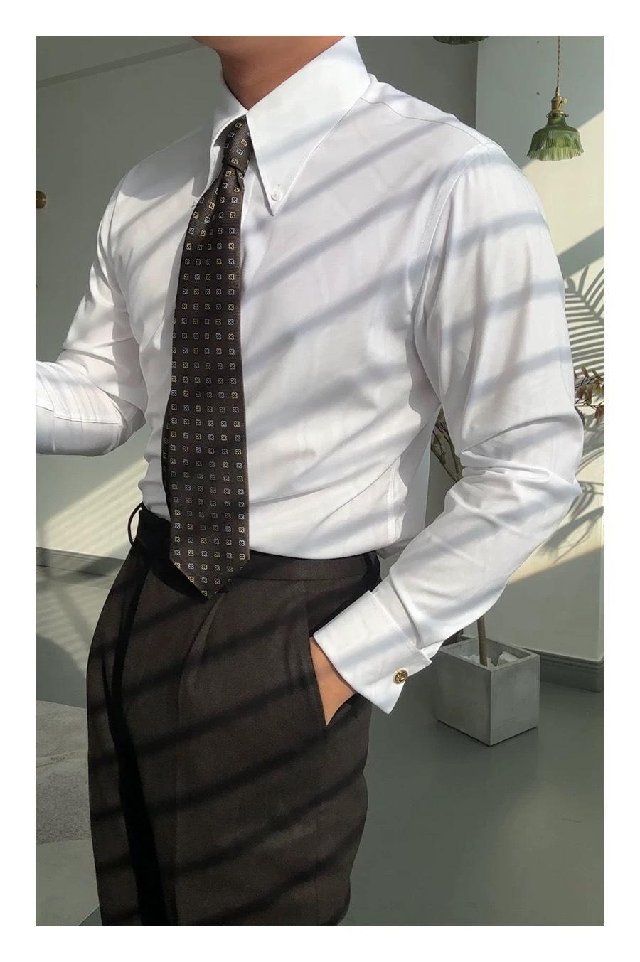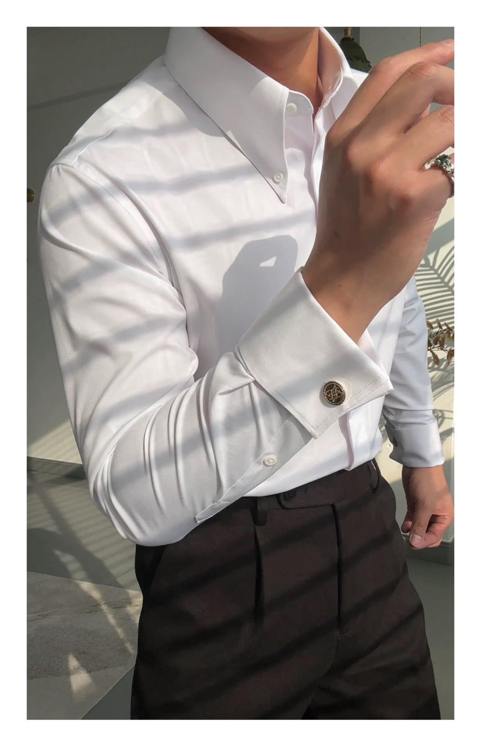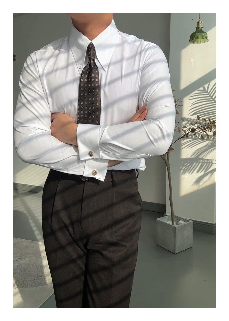 Long-sleeve construction – tailored for business wear and compatible with cufflinks for added sophistication.